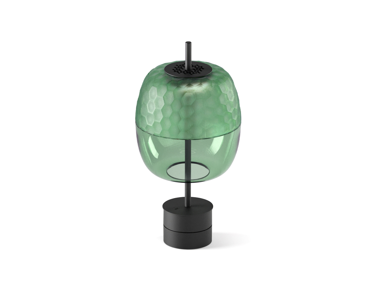 Handmade and hand-ground blown glass in forest green colour.