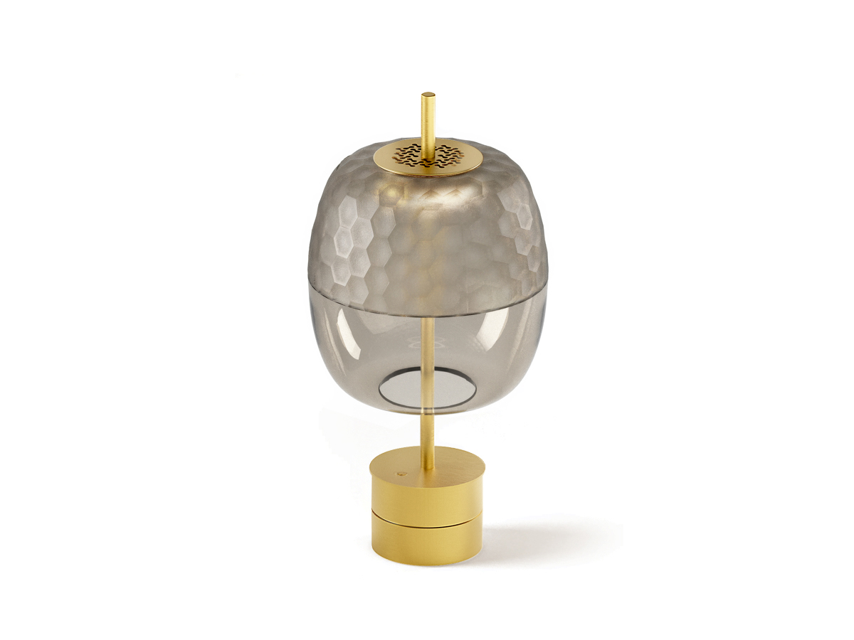 Metal base with polyacrylic paint in mat black or mat brass finish, with integrated dimmer button.
